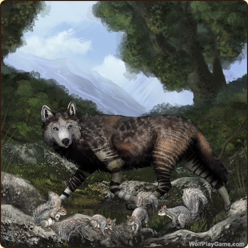 Base Coat: Wolverine (Legendary) Eyes: Amethyst (Rare) Nose: Black (Common) Inner Ears: White Leg Type: Rings Leg Color: White Head Type: Large Facemask Head Color: White Muzzle Type: Narrow Muzzle Color: White Back Type: Dapple Back Color: Silver Piebald 1: Black Belton: Silver Okapi: Cream Leopard: Obsidian Speckle Type: Shoulder Speckle Color: Silver Ear Edges Type: Half Ear Edges Color: White |