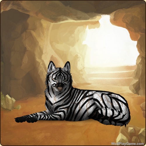 Base Coat: Zebra (Legendary) Eyes: Green (Common) Nose: Dark Liver (Common) Head Type: Reverse Throat Head Color: None Back Type #2: Manchado Back Color #2: None Brindle: Tan Speckle Type: Shoulder Speckle Color: None Ear Edges Type: Full Ear Edges Color: None |