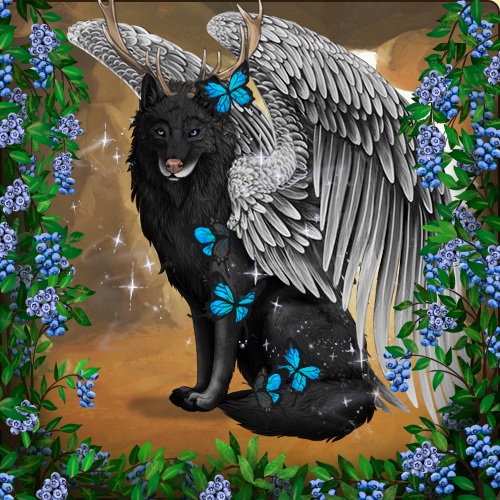 Base Coat: First Snow (Exclusive) Eyes: Amethyst (Rare) Nose: Pink (Common) Leg Type: Short Boots Leg Color: None Head Type: Small Facemask Head Color: None Muzzle Type: Stripe Muzzle Color: None Back Type: Dapple Back Color: None Back Type #2: Side Splash Back Color #2: None Brindle: Blue Speckle Type: None Speckle Color: Blue |
