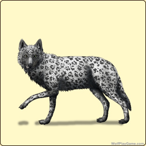 Base Coat: Silver Dapple (Rare) Eyes: Gold-Green (Common) Nose: Black (Common) Inner Ears: None Head Type: Panda Head Color: None Muzzle Type: Wide Muzzle Color: None Back Type: None Back Color: White Leopard: Obsidian Speckle Type: Full Speckle Color: None Ear Edges Type: Tip Ear Edges Color: None |