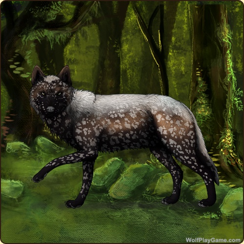 Base Coat: Wolverine (Legendary) Eyes: Gold-Green (Common) Nose: Black (Common) Leg Type: None Leg Color: Obsidian Head Type: Reverse Throat Head Color: Obsidian Muzzle Type: Stripe Muzzle Color: None Back Type: Half Back Color: White Back Type #2: Side Splash Back Color #2: None Shoulder: Obsidian Leopard: White Ear Edges Type: None Ear Edges Color: Cream |
