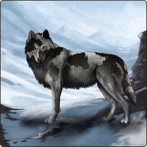 Base Coat: Faded Black (Legendary) Eyes: Blue-Green (Common) Nose: Black (Common) Leg Type: Frosted Leg Color: Black Head Type: None Head Color: Black Muzzle Type: None Muzzle Color: White Somatic Mutation: White Back Type: Manchado Back Color: None Back Type #2: Side Splash Back Color #2: None Speckle Type: Half Speckle Color: None Ear Edges Type: None Ear Edges Color: Blue |