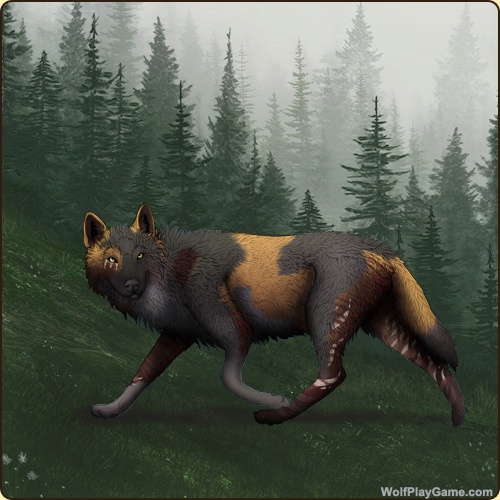 Base Coat: Otso (Common) Eyes: Gold (Common) Nose: Black (Common) Leg Type: Rainkissed Leg Color: None Head Type: Frontal Head Color: None Muzzle Type: None Muzzle Color: Obsidian Back Type: Brindle 2 Back Color: None Back Type #2: Side Splash Back Color #2: None Piebald 4: Black Okapi: Rosewood |