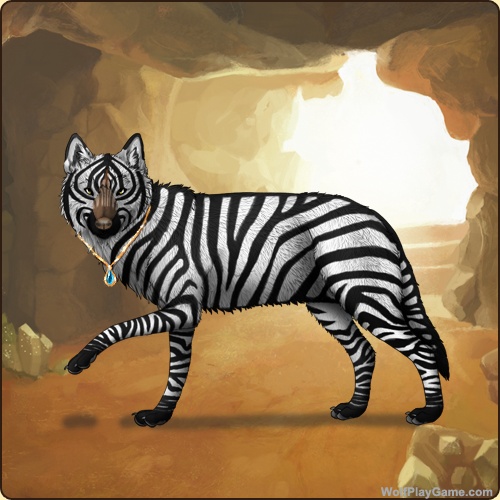 Base Coat: Zebra (Legendary) Eyes: Yellow (Common) Nose: Dark Liver (Common) Leg Type: Medium Leg Color: None Head Type: Panda Head Color: None Tail Type: Full Muzzle Type: Stripe Muzzle Color: Red Piebald 0: Ochre Speckle Type: Shoulder Speckle Color: None Ear Edges Type: Tip Ear Edges Color: None |