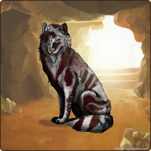 Base Coat: Iron (Common) Eyes: Blue-Brown (Common) Nose: Pink (Common) Leg Type: Stripes Leg Color: White Head Type: Frontal Head Color: White Muzzle Type: Stripe Muzzle Color: None Somatic Mutation: White Back Type: Thylacine Back Color: White Shoulder: Rosewood Piebald 4: Rosewood Speckle Type: Full Speckle Color: White Ear Edges Type: Half Ear Edges Color: None |