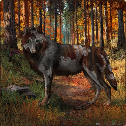 Base Coat: Iron (Common) Eyes: Green (Common) Nose: Dark Liver (Common) Inner Ears: Red Leg Type: Rainkissed Leg Color: Red Head Type: Snip Head Color: Red Tail Type: Tip Muzzle Type: Stripe Muzzle Color: Slate Somatic Mutation: White Back Type: Thylacine Back Color: Red Shoulder: Blue Piebald 1: Rosewood Belton: Ombre Speckle Type: Full Speckle Color: Rosewood Ear Edges Type: None Ear Edges Color: Blue |