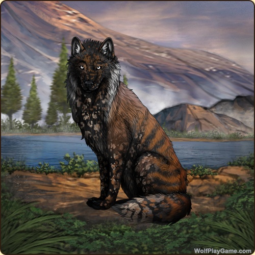 Base Coat: Obsidian (Common) Eyes: Ice (Common) Nose: Black (Common) Inner Ears: White Leg Type: None Leg Color: White Head Type: Reverse Throat Head Color: White Muzzle Type: Stripe Muzzle Color: None Harlequin: Black Back Type: Thylacine Back Color: Red Back Type #2: Dapple Back Color #2: None Shoulder: Red Brindle: Hickory Belton: Red Leopard: Ombre Speckle Type: Half Speckle Color: Obsidian Ear Edges Type: Tip Ear Edges Color: Ombre |