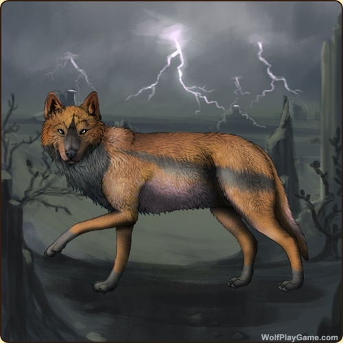 Base Coat: Ochre (Common) Eyes: Green (Common) Nose: Black (Common) Leg Type: Paws Leg Color: Slate Head Type: Throat Head Color: Slate Muzzle Type: Stripe Muzzle Color: Black Back Type: Side Splash Back Color: Slate |