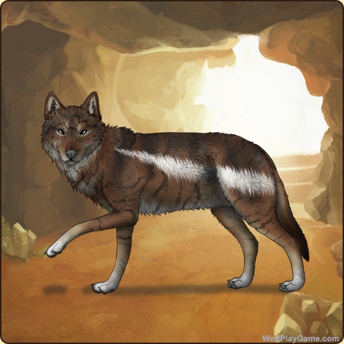 Base Coat: Red Wolf (Common) Eyes: Dark Brown (Common) Nose: Black (Common) Head Type: Large Facemask Head Color: None Tail Type: Tip Muzzle Type: Stripe Muzzle Color: None Back Type: Side Splash Back Color: White Brindle: Obsidian Speckle Type: Shoulder Speckle Color: None |
