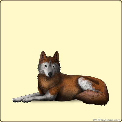 Base Coat: Red (Common) Eyes: Green (Common) Nose: Black (Common) Leg Type: Medium Leg Color: White Head Type: Large Facemask Head Color: White Muzzle Type: Stripe Muzzle Color: Grey |